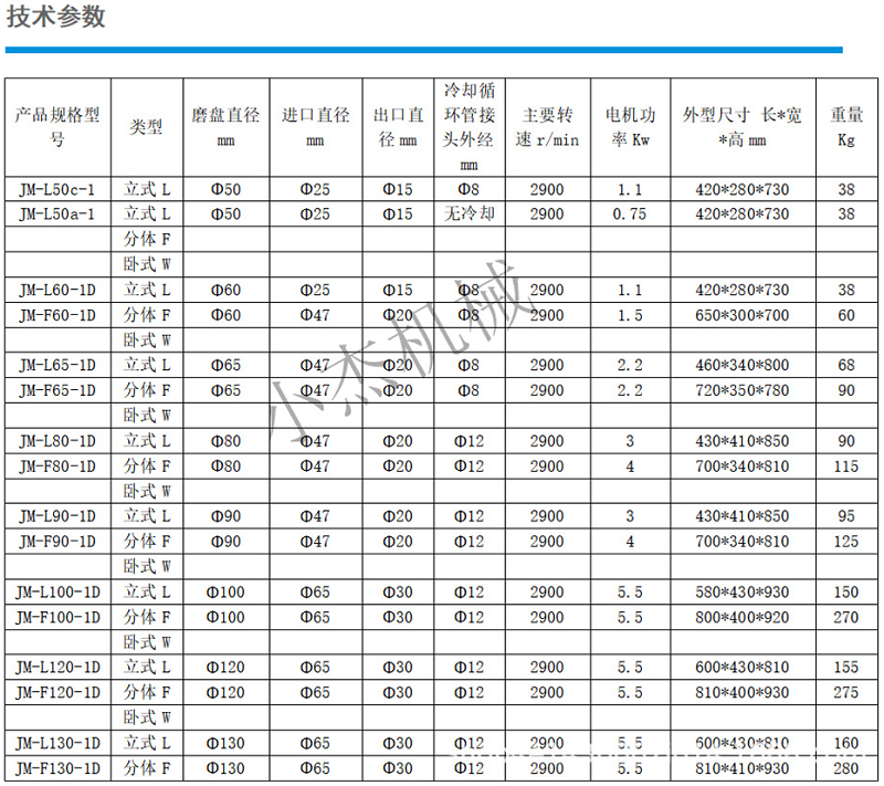 小型膠體磨技術(shù)參數(shù):